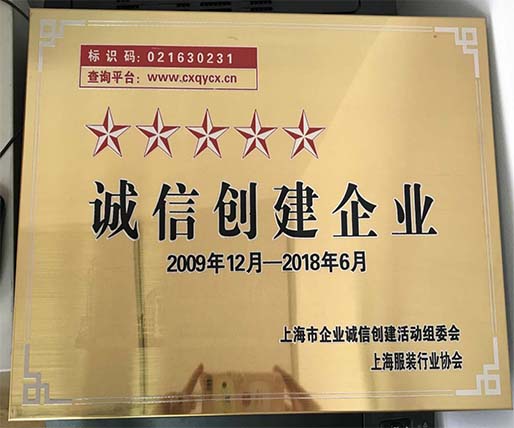 在上海服裝行業協會舉辦的2017上海市企業誠信創建活動中,公司獲得五星銅牌。